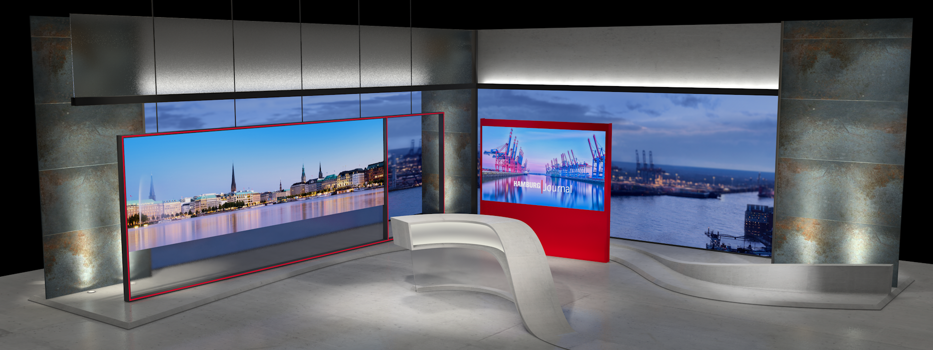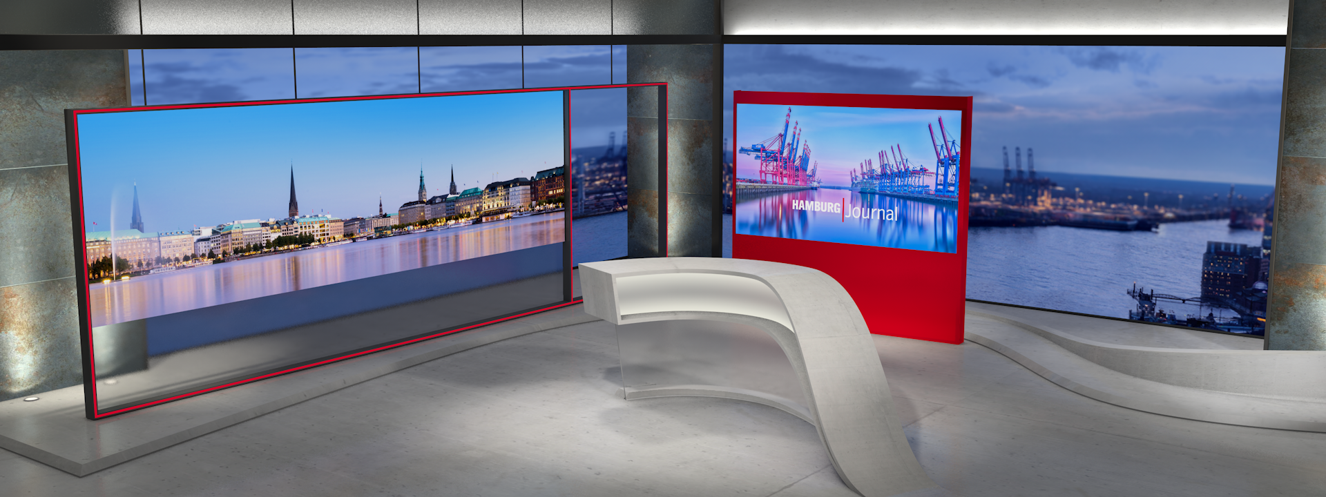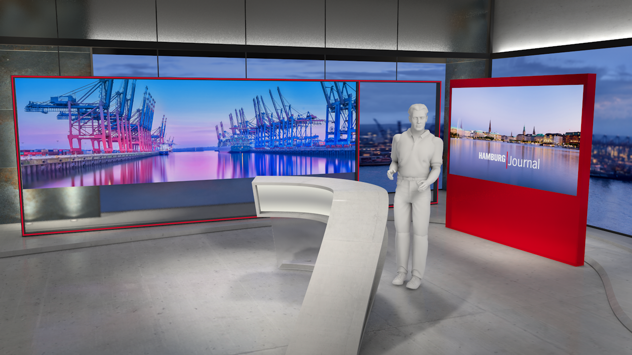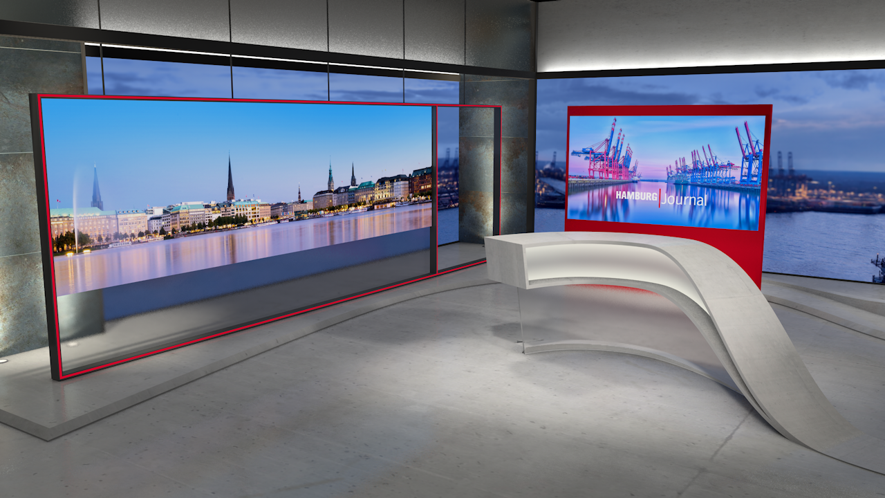 Design for a newscaststudio of NDR sending news from in and around the northgerman city Hamburg.
